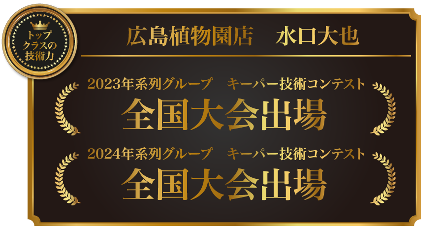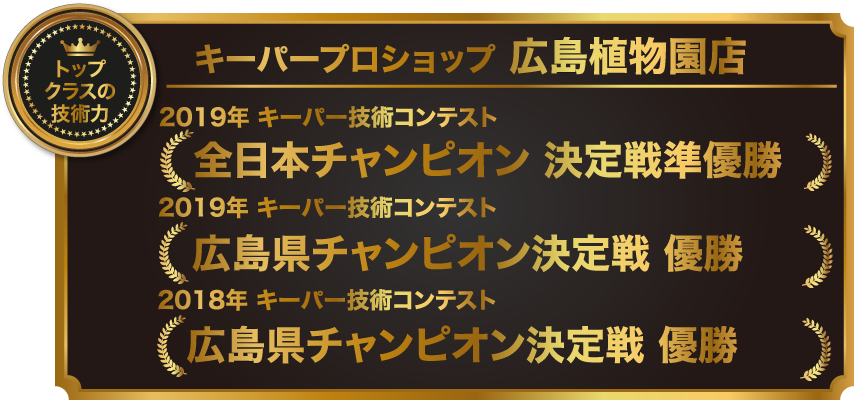 広島植物園店には、キーパーコーティング技術1級資格者4名が在席しております。