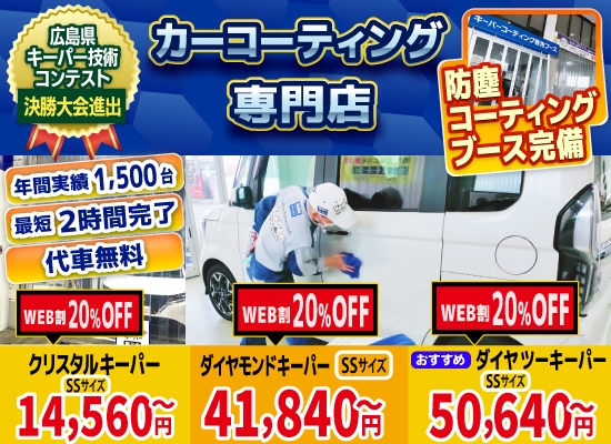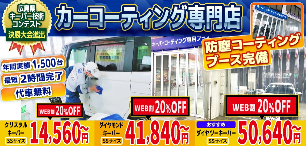 私達キーパープロショップは、広島市・佐伯区・廿日市エリアのカーコーティング専門店として、日本ダントツのカーコーティングブランド、キーパーの専門店として認定を受けております!