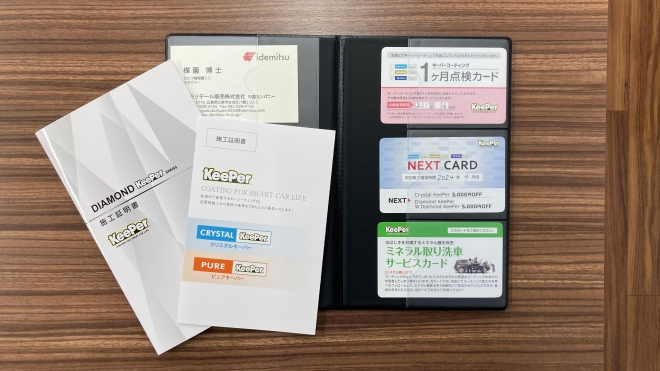 また、当店では全てのキーパーコーティングに施工証明書を発行を実施しております。